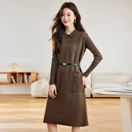 2024秋冬新款纯色下摆小流苏毛边设计中长款连衣裙针织衫女装百搭