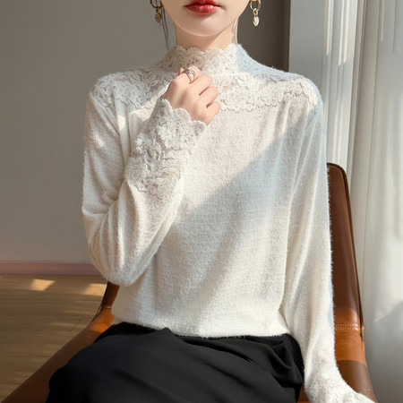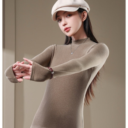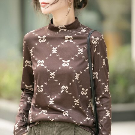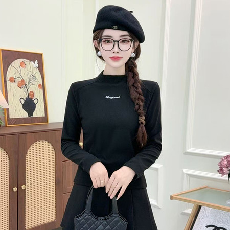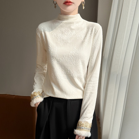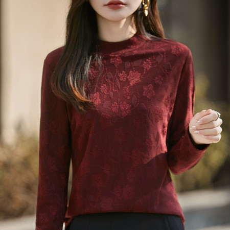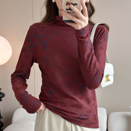 超柔提花立领打底衫可外穿亲肤磨毛修身半高领内搭上衣