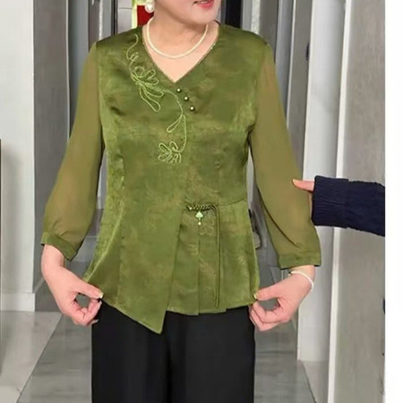 万运羊绒&YTM-A302-蚕丝V领重工提花上衣{含蚕丝}