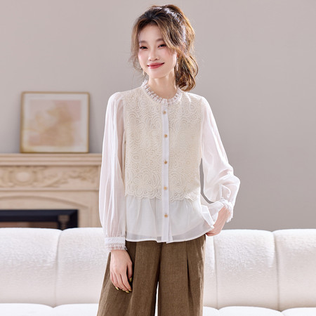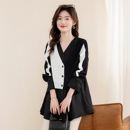 宏道服饰&HZH-Z137-双色木耳边长袖模特图