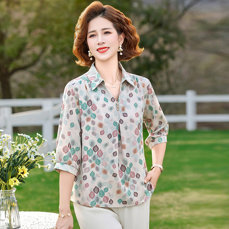 金丽顺&316款全棉印花九分袖衬衫
