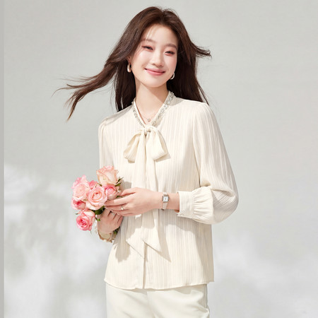 2026新款雪纺衫衬衫罩衫丝带蝴蝶结衬衫