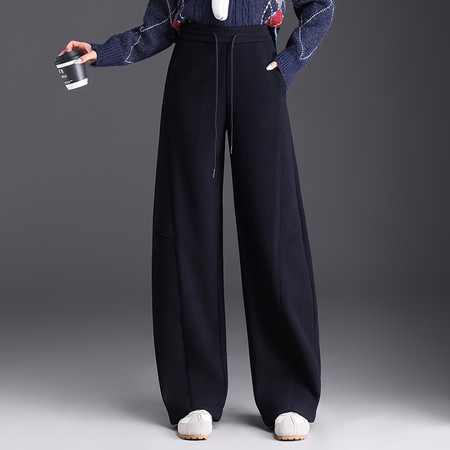 秋冬软糯阔腿裤女垂感针织直筒长裤拖地裤