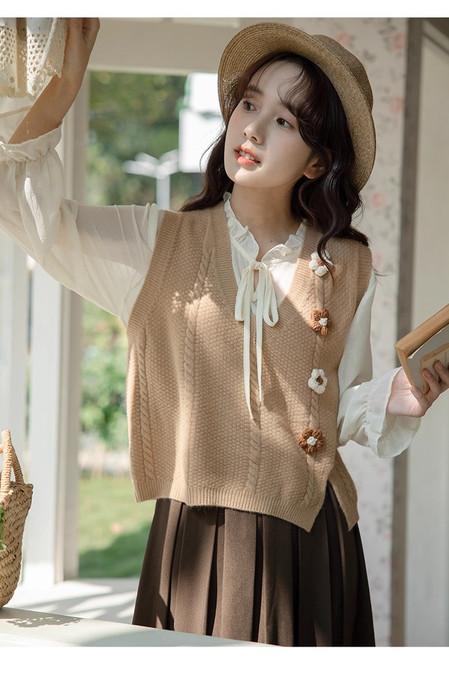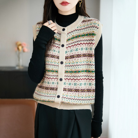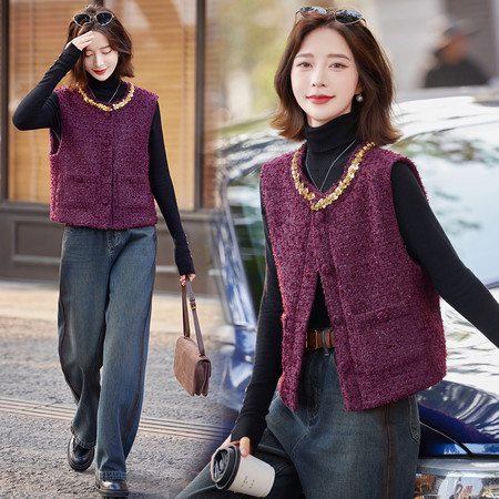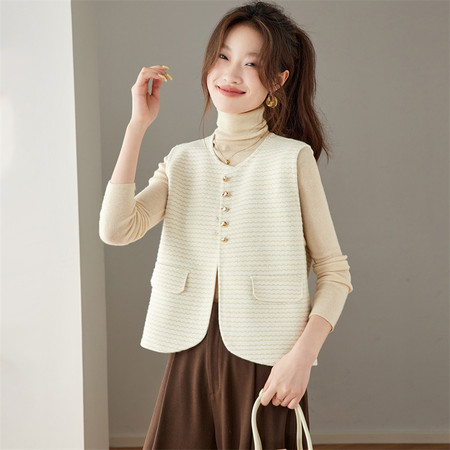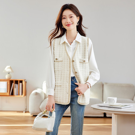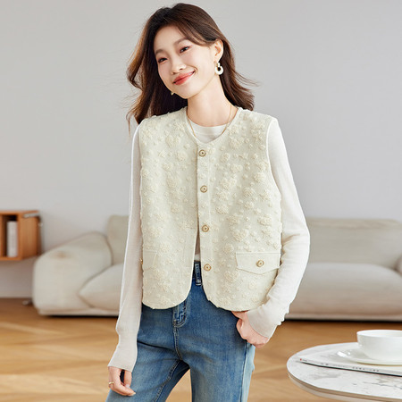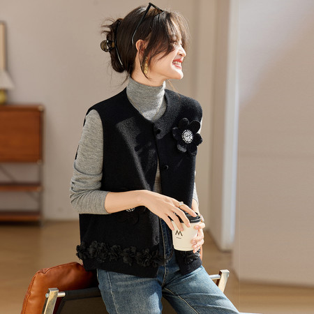2025秋冬新款仿毛呢针织马甲重工花朵开衫马甲