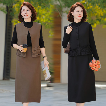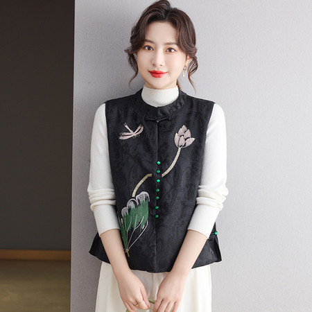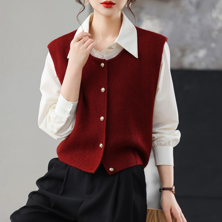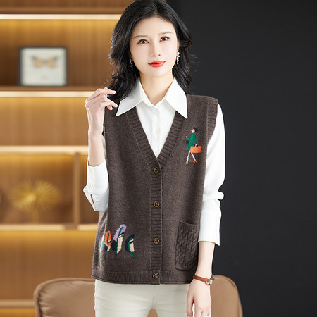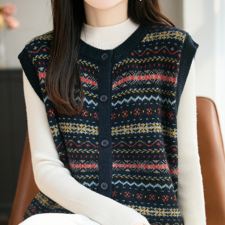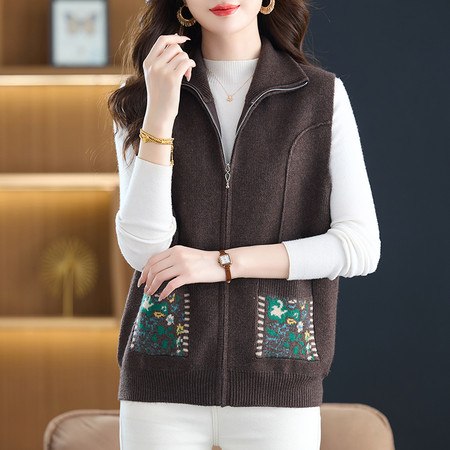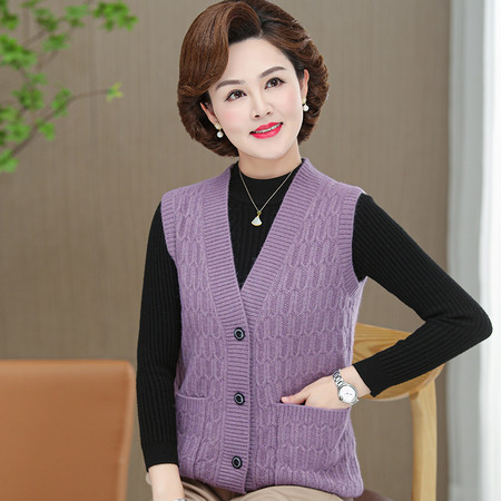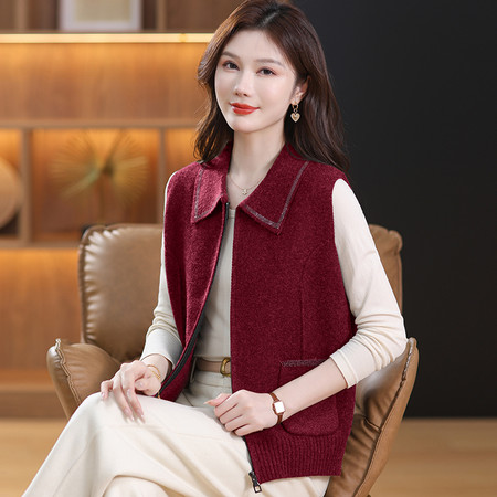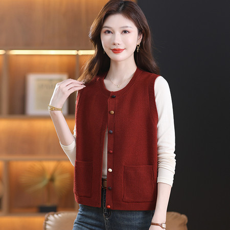 新款新中式爆款妈妈装时尚马甲V领外穿百搭洋气春秋针织马甲外套
