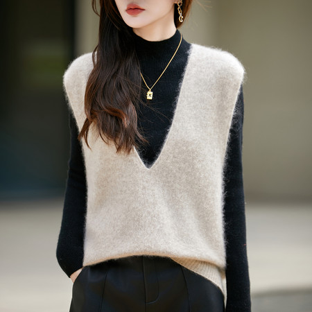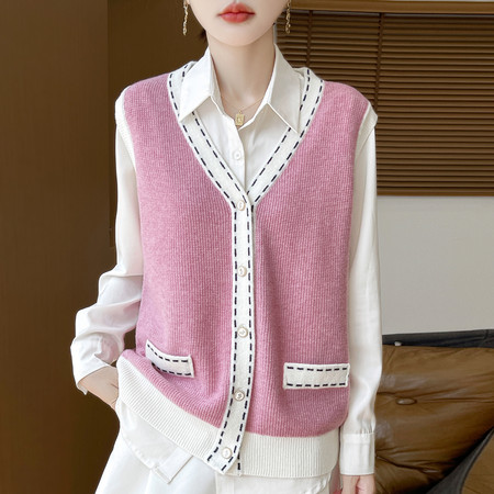 蒂绒工厂店&1299双色料带毛马甲