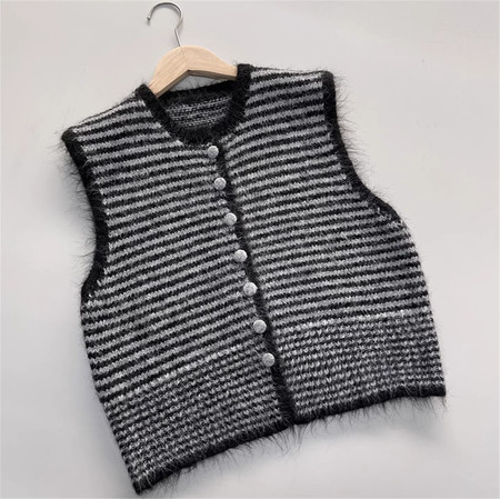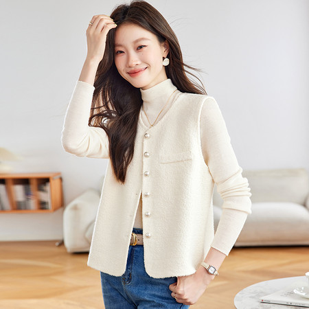 2025秋冬新款仿毛呢针织马甲重工花朵开衫马甲