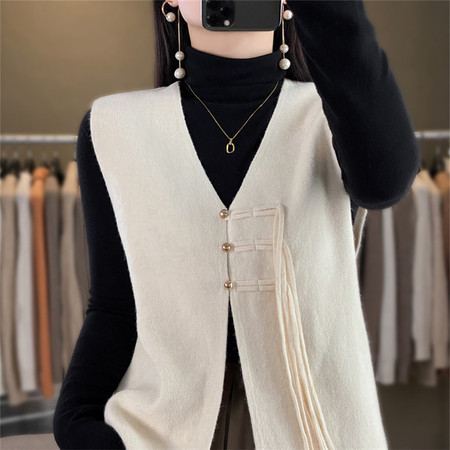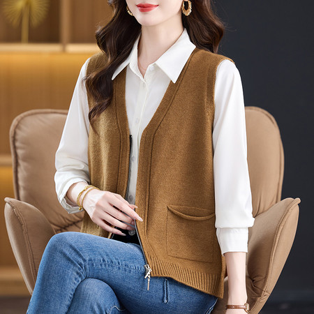 新款新中式爆款妈妈装时尚马甲V领外穿百搭洋气春秋针织马甲外套