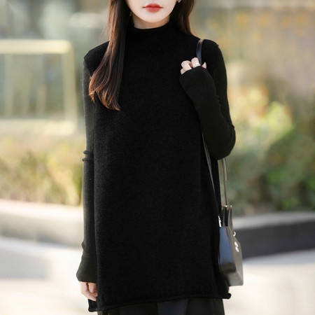 老款中长款针织衫马甲连帽女装有弹力简单大方基础口袋设计百搭毛衣女装做工板正