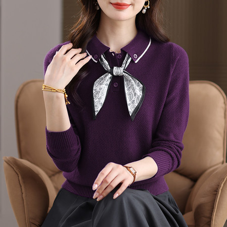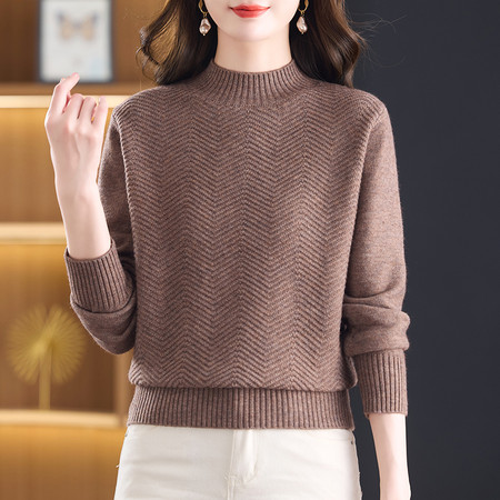 含羊毛拼色半高领提花针织毛衣女冬款2025新款气质减龄百搭打底