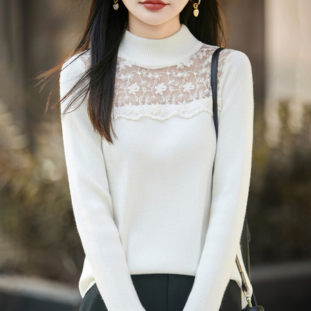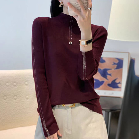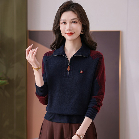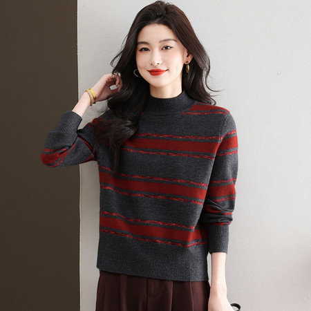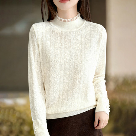 万运羊绒&SL7126-1半高领立体提花打底衫