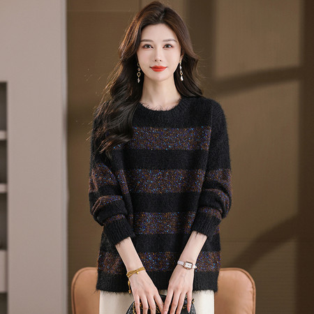 2025秋冬新款针织衫宽松大版数码印花机打水钻毛衣