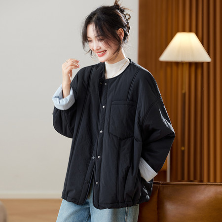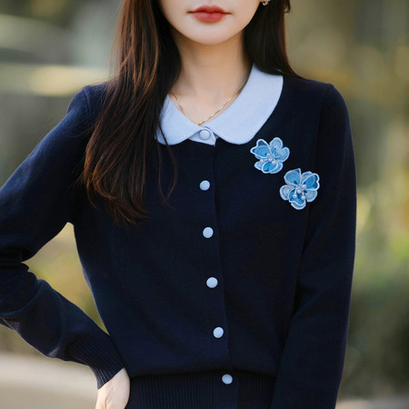 蓝色短款外套女2025秋冬钉珠木耳边绒感上衣