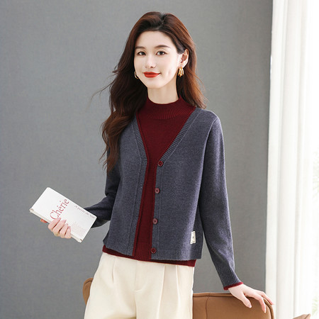 含羊毛拼色半高领提花针织毛衣女冬款2025新款气质减龄百搭打底