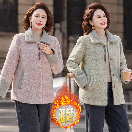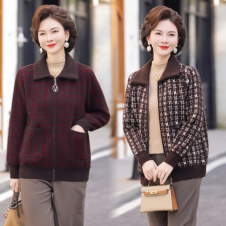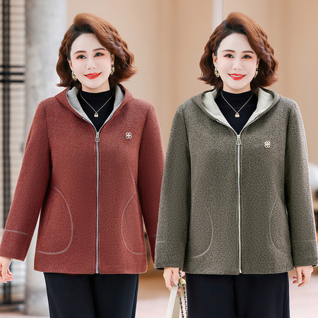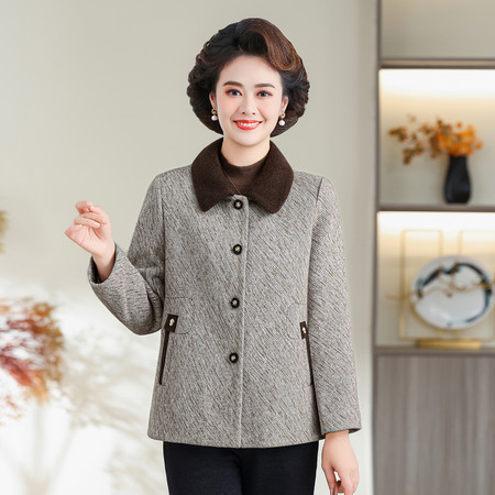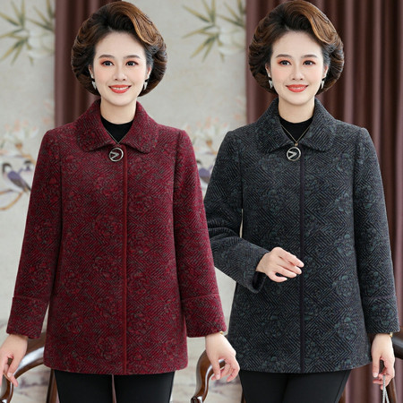 中年妈妈秋装秋冬外套加大码上衣女毛呢开衫