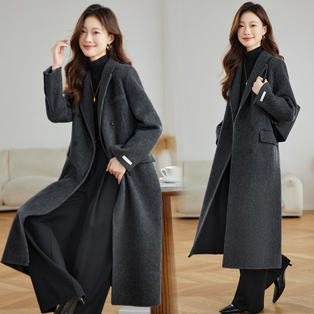 中老年妈妈装双面呢羊毛长款外套