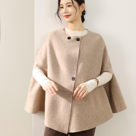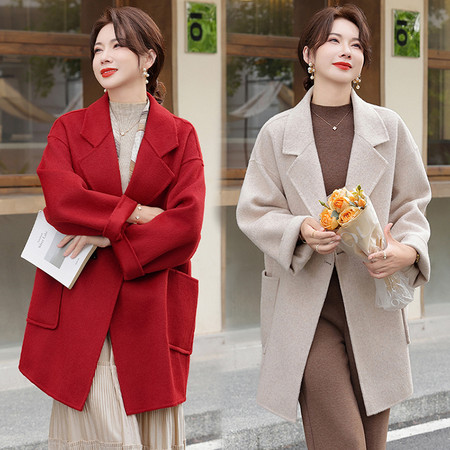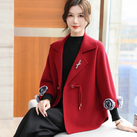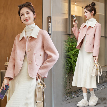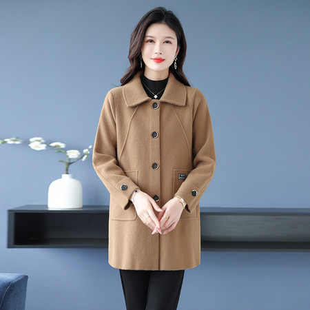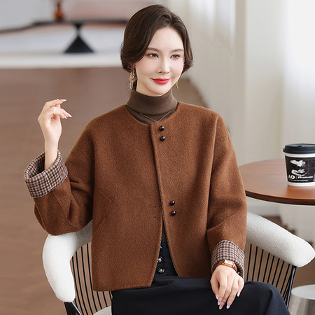 50+中年妈妈装2025秋冬新款双面呢外套小个子女装纯羊毛大衣短款女装