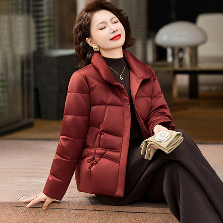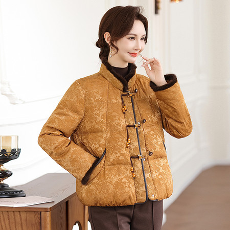 2025新国标90白鸭绒短款翻领毛领中老年羽绒服
