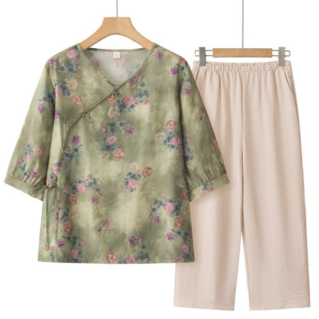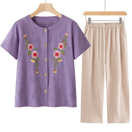5999妈妈装奶奶装夏季【上衣24,米裤15,黑裤15,绣花裤16】真实4个码