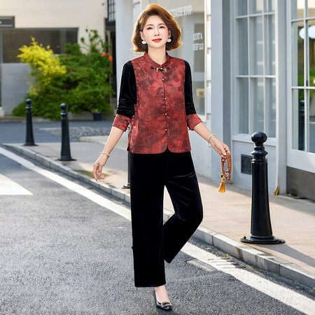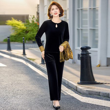 雪绒羊&Q112(妈妈)秋装套装金丝绒三件套装