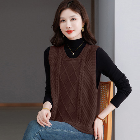 万运羊绒&ZS95036-天丝亚麻条纹挑空圆领无袖
