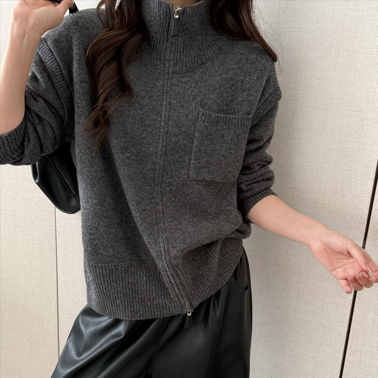 2025年新款热卖全羊毛针织拉链毛衣开衫