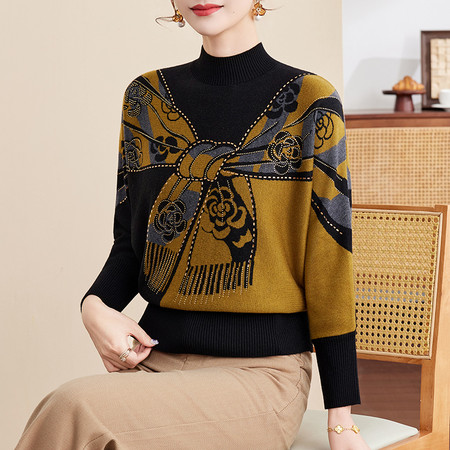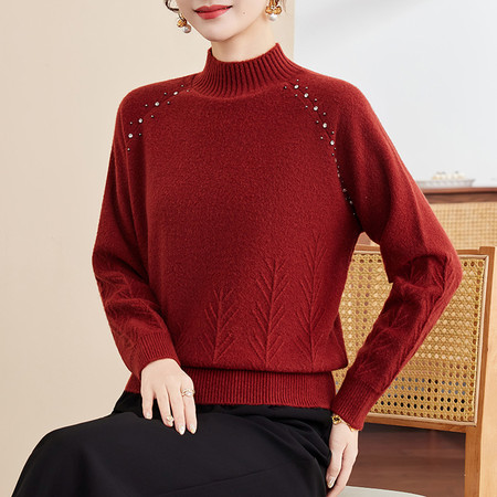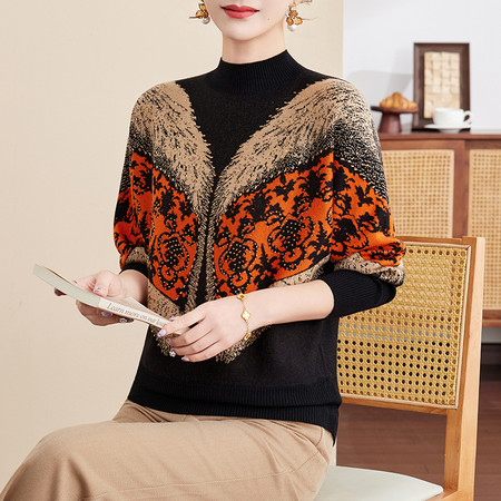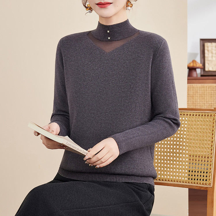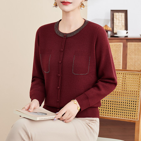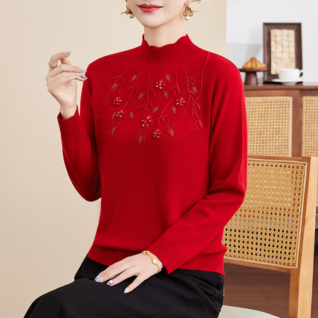 2025新款妈妈装加绒加厚圆领针织打底衫