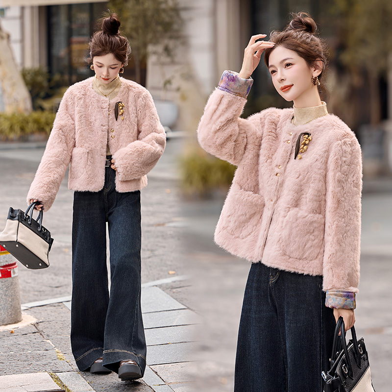 冬装两面穿羊羔毛小香风g风两穿圆领皮草外套