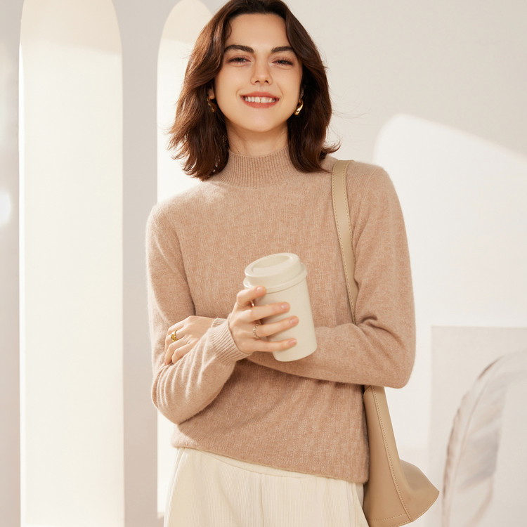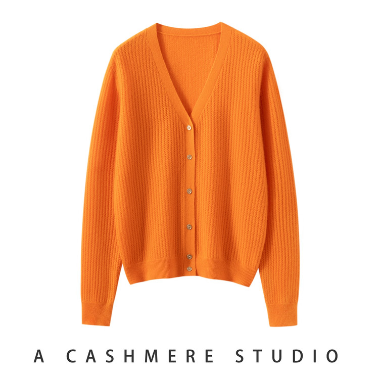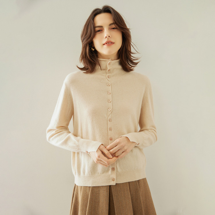 2025新款前后两穿堆堆高领35%山羊绒衫女单排扣高领毛衣针织开衫外套