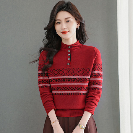 高腰短款毛衣女士秋冬内搭保暖上衣2025新款洋气妈妈装针织衫冬季