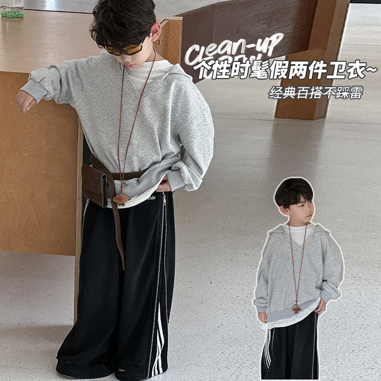 2025欧版男童长袖T恤春秋款中大童纯色连帽卫衣打底衫秋季男孩薄上衣潮童