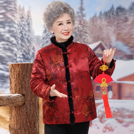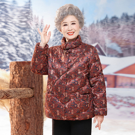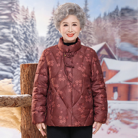 新国标90白鸭绒水貂毛领羽绒服中老年妈妈奶奶装