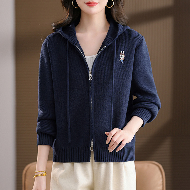 连帽拉链卫衣女针织加厚款2025新款宽松大码外套百搭帽衫