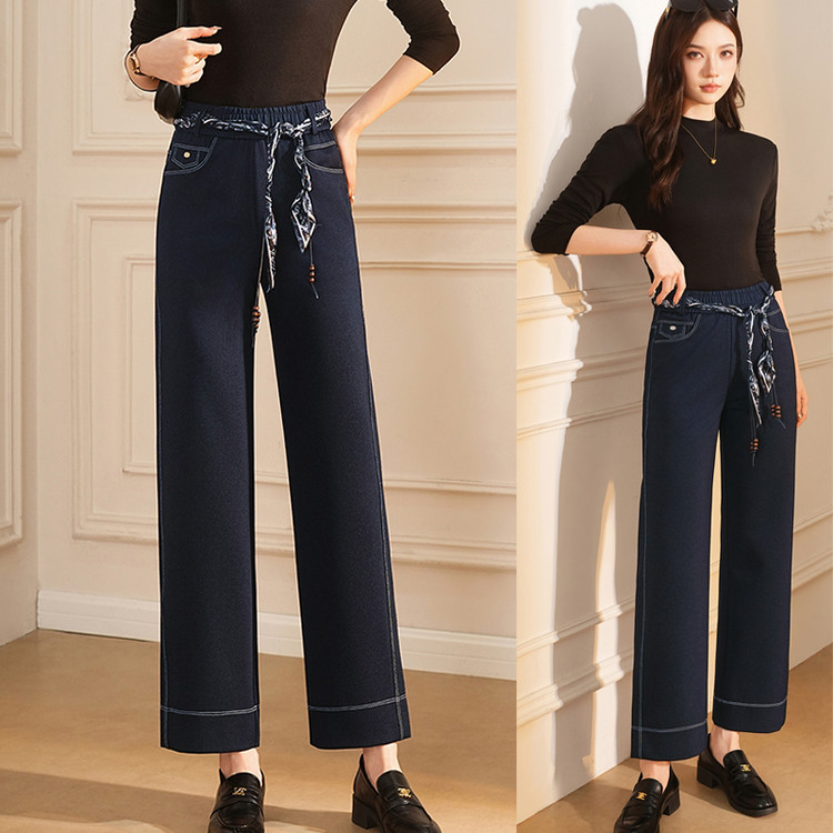 串珠腰带牛仔法棍裤