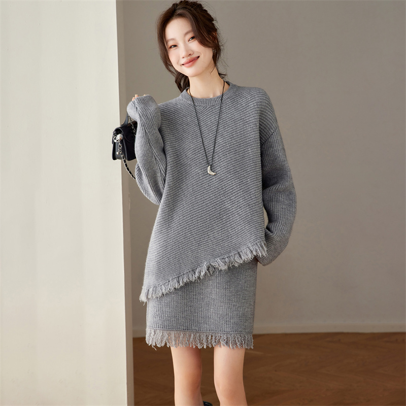 不规则流苏针织衫半身裙套装女秋冬洋气毛衣裙两件套女装