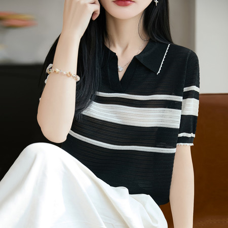 polo领桑蚕丝针织衫短袖t恤女2023新款夏季妈妈T8880靓丽自产 重点推广
