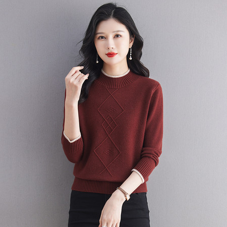 2025秋冬新款爆款针织衫中淑女装圆领上衣洋气打底衫中老年妈妈装