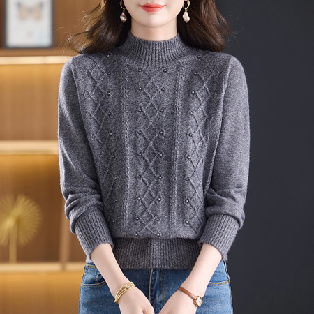 原创半高领绞花毛衣女秋冬新款中年妈妈内搭宽松显瘦洋气针织打底衫厚