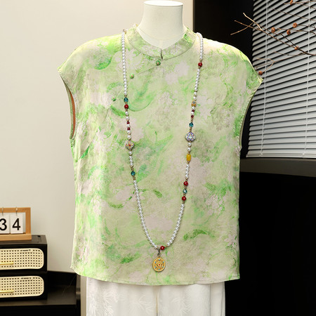 新中式新款妈妈装旗袍领中老年针织上衣