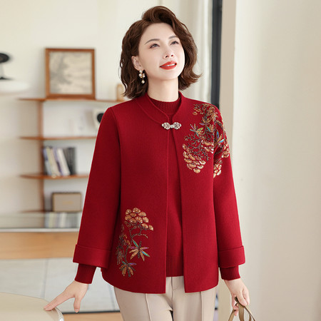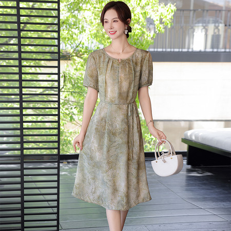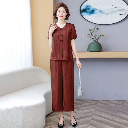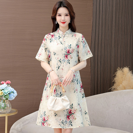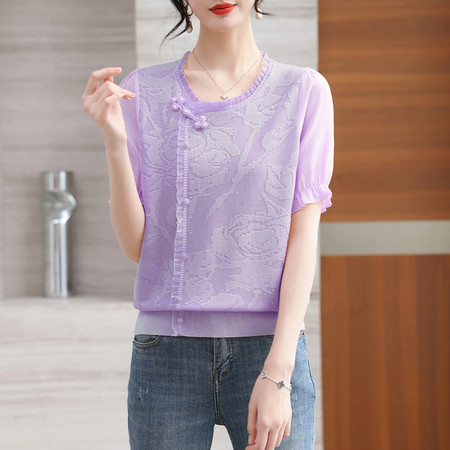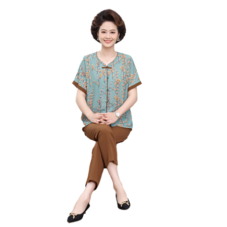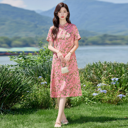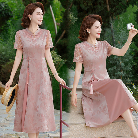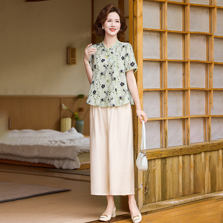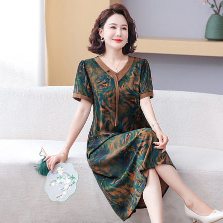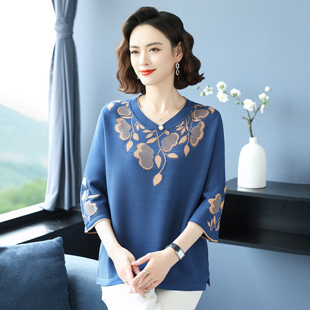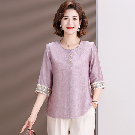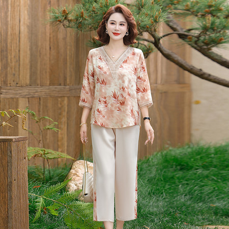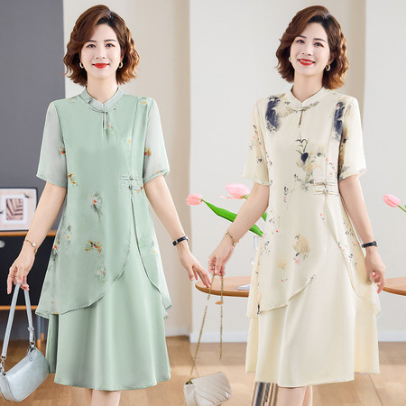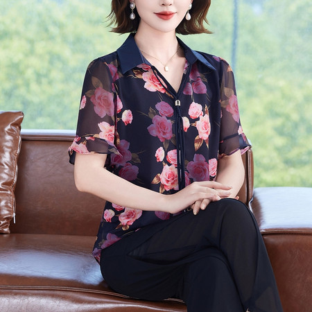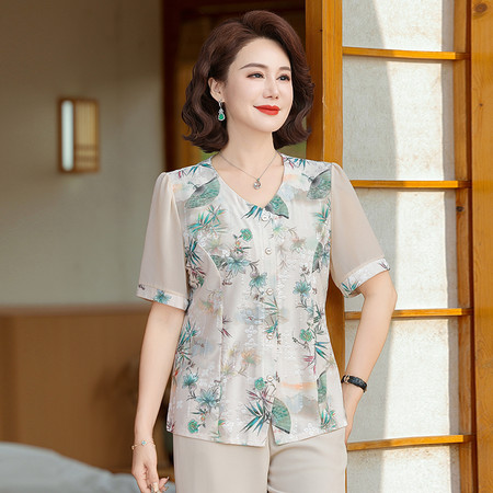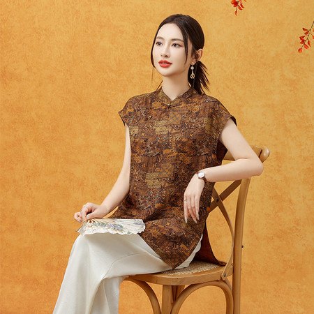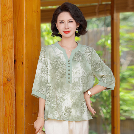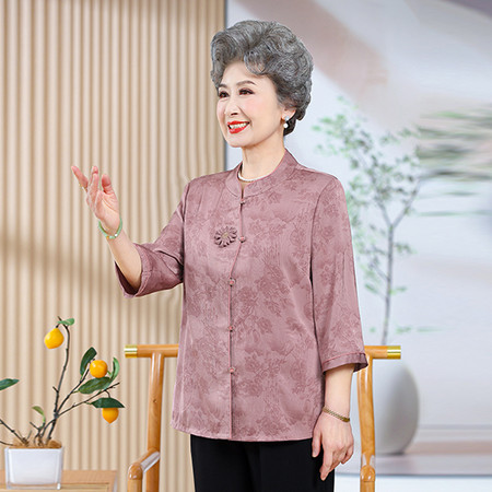 2025夏秋季中老年女装中长款仿真丝新中式上衣