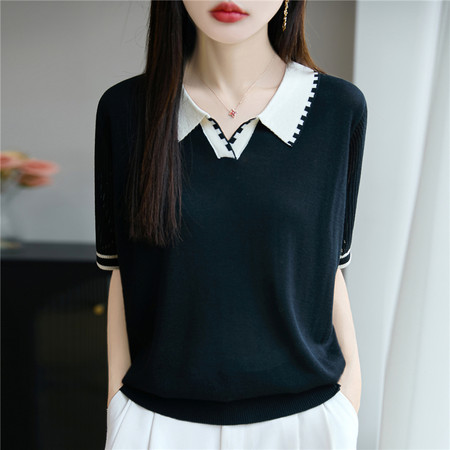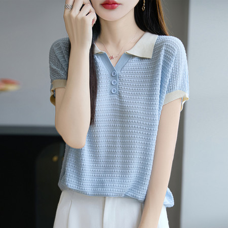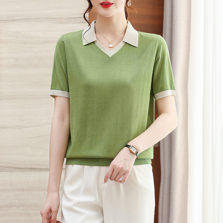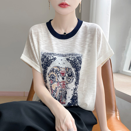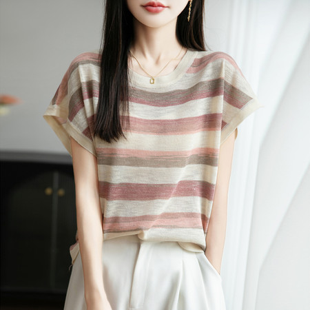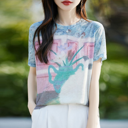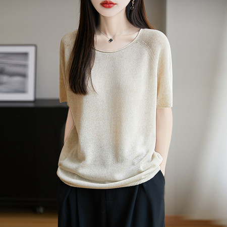 天丝亚麻一线卷边圆领短袖ZS-95042/48元