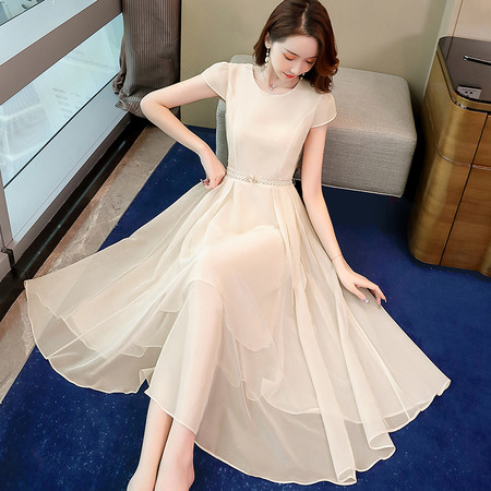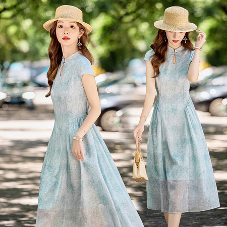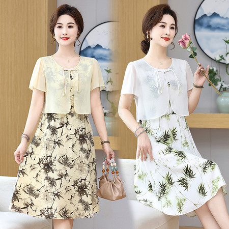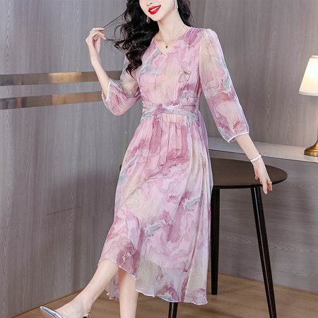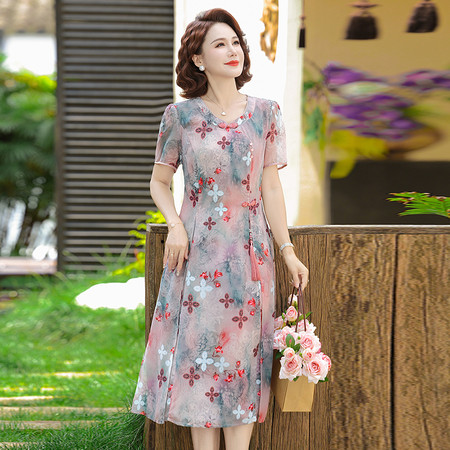 高端木耳领雪纺短袖连衣裙女夏季新款洋气碎花收腰显瘦长裙子