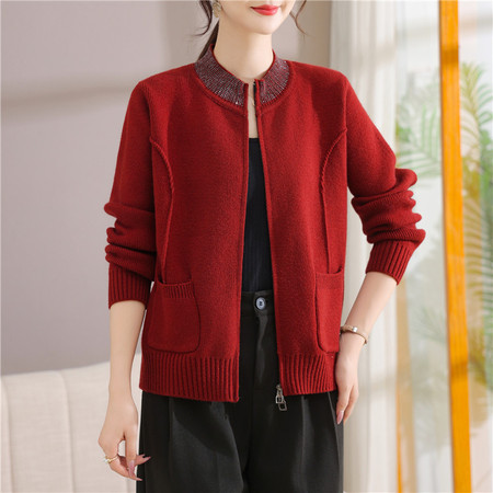发财羊亿亿芭莎2529款细针羊毛拉链开衫
