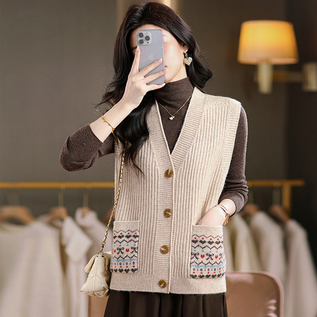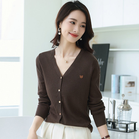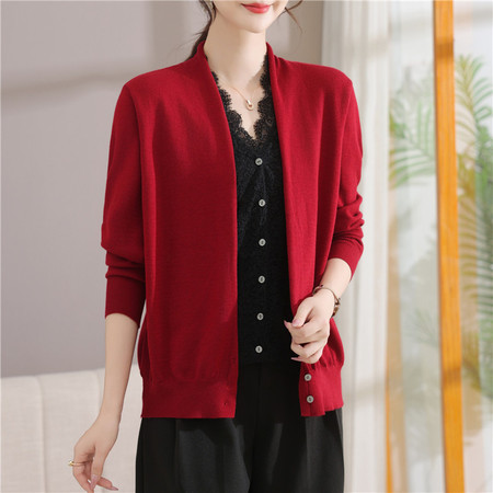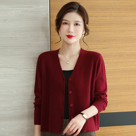 发财羊亿亿芭莎29-6001款细针羊毛V领开衫