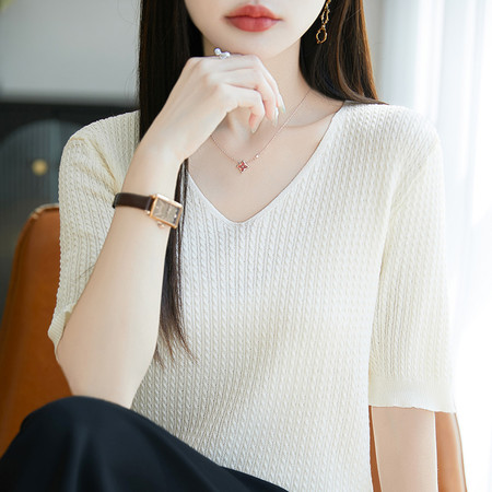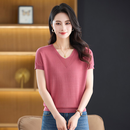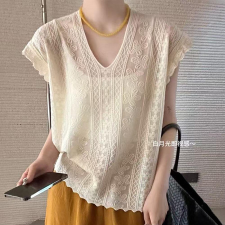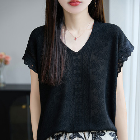 2025新款V领亲肤欧根纱飞机袖针织衫