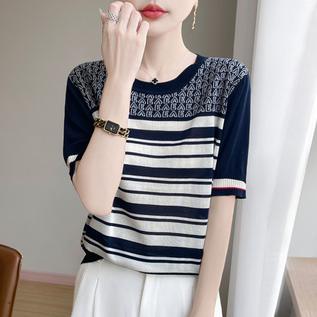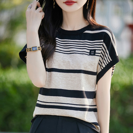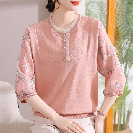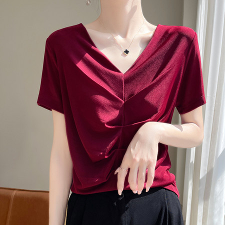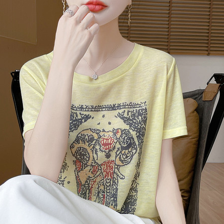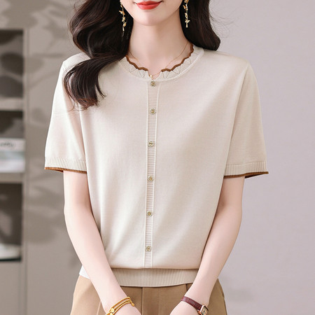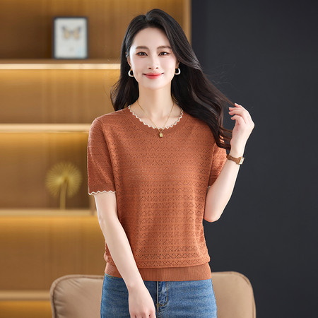 2025新款夏季薄款短袖莱赛尔天丝吸汗显瘦中年妈妈装圆领T恤上衣气质贵气爆款针织衫