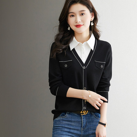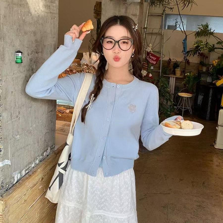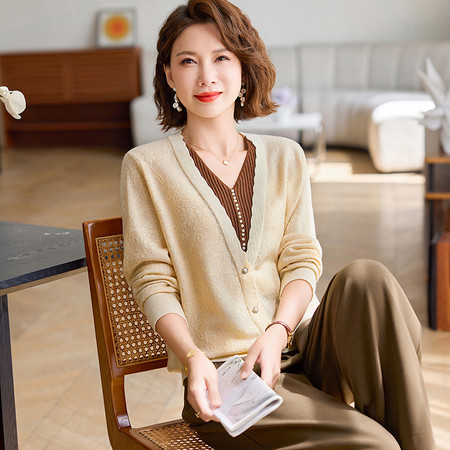 2025年秋季爆款原创花纱拼色新款开衫针织衫