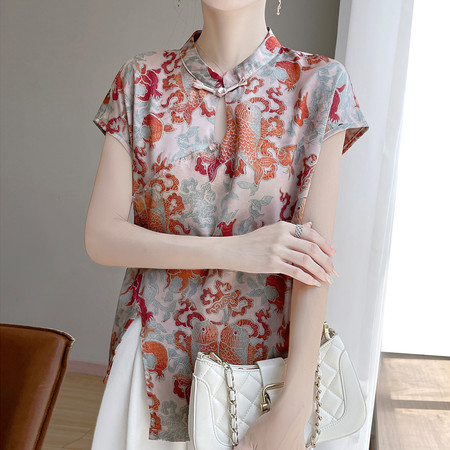 2025夏秋新中式中老年复古·女装仿真丝中长款上衣