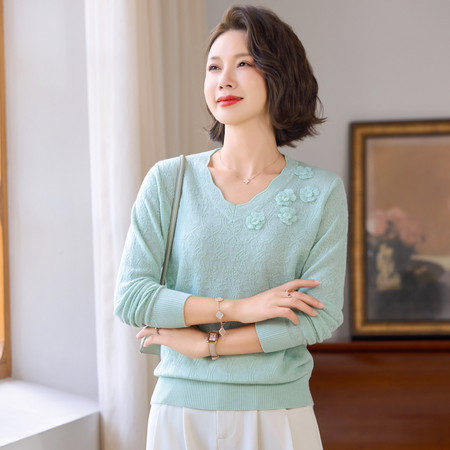 2025秋季原创爆款镂空爆珠羊毛针织打底衫