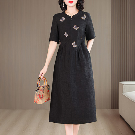 2025夏季新款重磅刺绣气质精致龟纹连衣裙